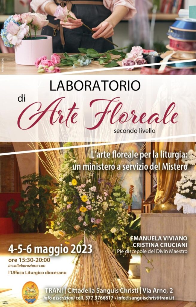dioc. Trani LABORATORIO DI ARTE FLOREALE – SECONDO LIVELLO 12 Aprile 2023 0 31 clic qui per l’articolo sul sito della Diocesi di Trani-Bisceglie-Barletta ARTICOLI CORRELATIALTRO DALL'AUTORE GIORNATA PRO ORANTIBUS – MONASTERO SAN RUGGIERO INCONTRO DI CLERO ZONA PASTORALE TRANI “SAN NICOLA PELLEGRINO” Giovedì 20 novembre 2025 PDF: I CONTENUTI DEL PRIMO INCONTRO – Prof. Pier Cesare RIVOLTELLA Prof. Pier Cesare RIVOLTELLA – PRIMA SESSIONE INCONTRO DIOCESANO A CORATO UN INCONTRO SULLA LIBERTA’ DI STAMPA – Un diritto da conoscere, difendere e onorare – Per giornalisti e per l’intero pubblico