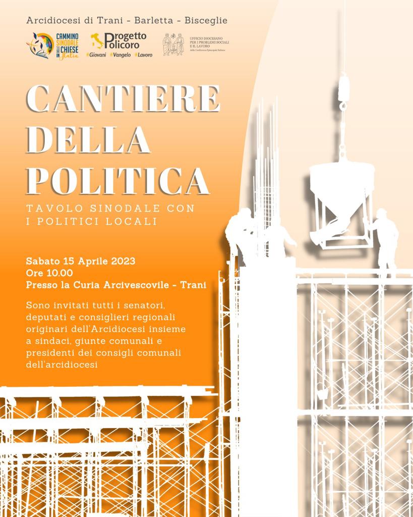 L’ARCIVESCOVO INCONTRA IL “MONDO”  DELL’AMMINISTRAZIONE PUBBLICA  Nell’ambito dei tavoli di incontro sinodale con tutti gli ambienti e le realtà presenti nel territorio diocesano, l’Arcivescovo, Mons. Leonardo D’Ascenzo, insieme alla Commissione Diocesana di Pastorale Sociale e del Lavoro, il prossimo sabato 15 aprile alle ore 10.00, presso la Curia Arcivescovile, incontrerà i politici locali per un momento di confronto sinodale. Sono invitati tutti gli on. senatori … Continua a leggere L’ARCIVESCOVO INCONTRA IL “MONDO”  DELL’AMMINISTRAZIONE PUBBLICA  »