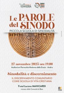 L’appuntamento si terrà ad Andria lunedì 27 novembre 2023, alle ore 19:00, presso l’auditorium della Parrocchia “Madonna della Grazia”.