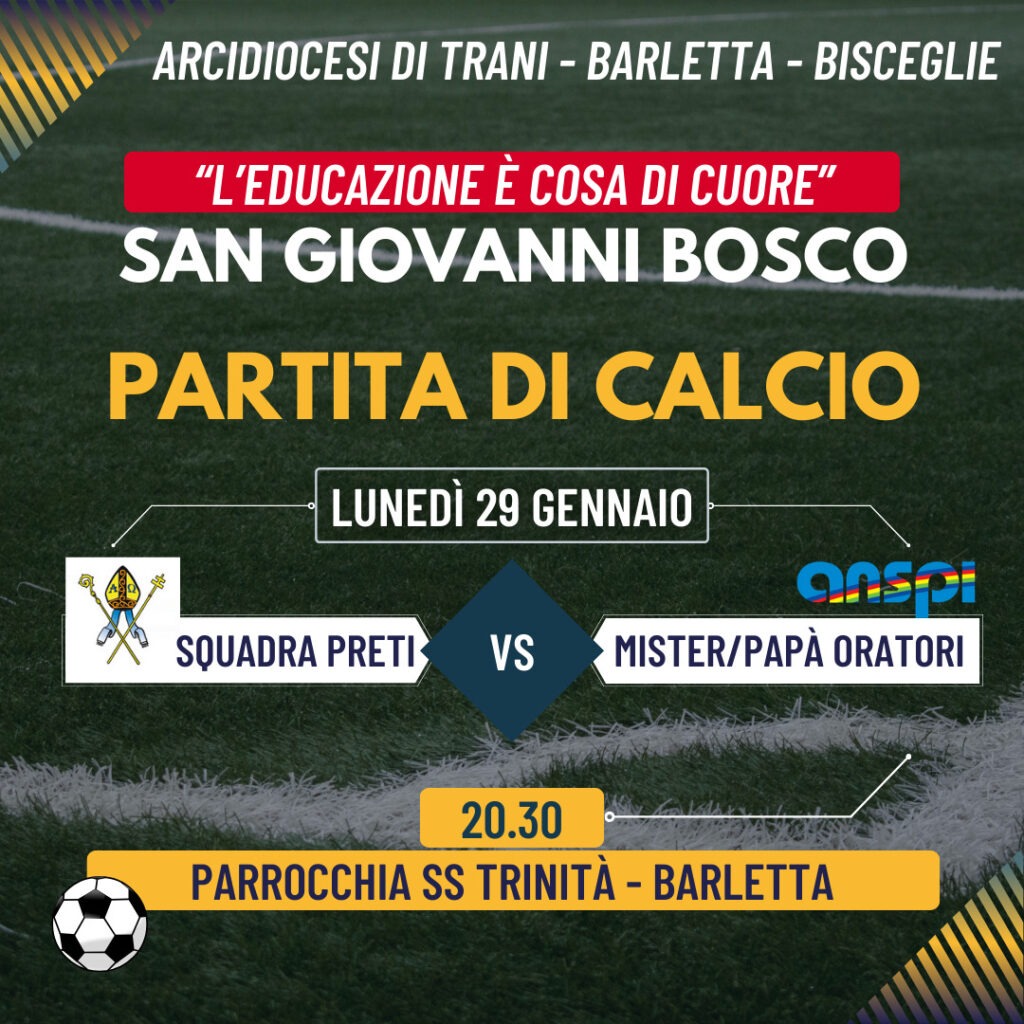 dioc. Trani “L’EDUCAZIONE E’ COSA DI CUORE” – PARTITA DI CALCIO SQUADRA PRETI VS MISTER/PAPA’ ORATORI ANSPI 21 Gennaio 2024 0 28 clic qui per l’articolo sul sito della Diocesi di Trani-Bisceglie-Barletta ARTICOLI CORRELATIALTRO DALL'AUTORE GIORNATA PRO ORANTIBUS – MONASTERO SAN RUGGIERO INCONTRO DI CLERO ZONA PASTORALE TRANI “SAN NICOLA PELLEGRINO” Giovedì 20 novembre 2025 PDF: I CONTENUTI DEL PRIMO INCONTRO – Prof. Pier Cesare RIVOLTELLA Prof. Pier Cesare RIVOLTELLA – PRIMA SESSIONE INCONTRO DIOCESANO A CORATO UN INCONTRO SULLA LIBERTA’ DI STAMPA – Un diritto da conoscere, difendere e onorare – Per giornalisti e per l’intero pubblico