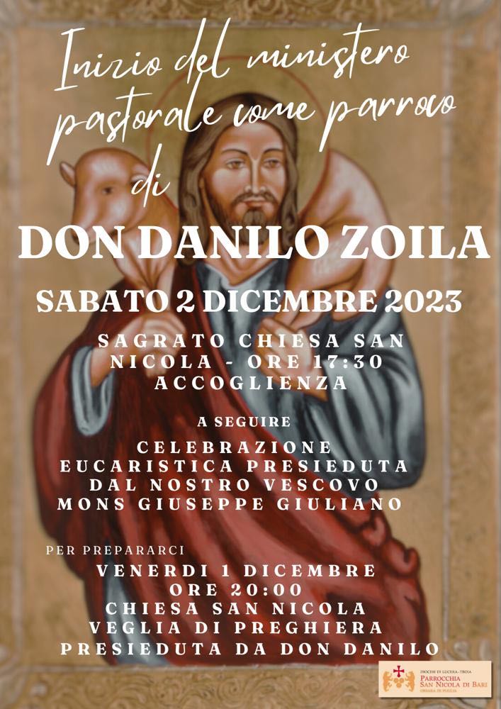 Sabato 2 dicembre 2023, nei primi vespri della prima domenica di Avvento, ci sarà l’ingresso di don Danilo Zoila quale nuovo parroco della parrocchia “San Nicola di Bari” in Orsara di Puglia. L’appuntamento è alle 17.30 in piazza Municipio. Dopo l’accoglienza, nella Chiesa Madre, seguirà la santa Messa presieduta da Sua Eccellenza il Vescovo, mons. Giuseppe Giuliano.