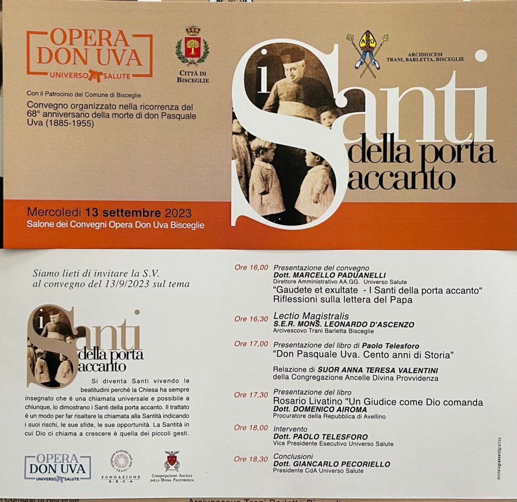 dioc. Trani L’ITERVENTO DELL’ARCIVESCOVO AL COVEGNO SU “I SANTI DELLA PORTA ACCANTO” 14 Settembre 2023 0 27 INTERVENTO DELL’ARCIVESCOVO clic qui per l’articolo sul sito della Diocesi di Trani-Bisceglie-Barletta ARTICOLI CORRELATIALTRO DALL'AUTORE Prof. Pier Cesare RIVOLTELLA – PRIMA SESSIONE INCONTRO DIOCESANO A CORATO UN INCONTRO SULLA LIBERTA’ DI STAMPA – Un diritto da conoscere, difendere e onorare – Per giornalisti e per l’intero pubblico BISCEGLIE, PARROCCHIA SANT’ANDREA APOSTOLO, CELEBRAZIONE EUCARISTICA PRESIEDUTA DALL’ARCIVESCOVO PER L’INIZIO DEL MINISTERO PASTORALE DI PARROCO DI DON FRANCESCO LORUSSO INCONTRO DI CLERO ZONA PASTORALE OFANTINA Trinitapoli, 17 novembre 2025 V Giornata nazionale di preghiera per le vittime e i sopravvissuti agli abusi nella Chiesa “Rispetto. Generare relazioni autentiche”.
