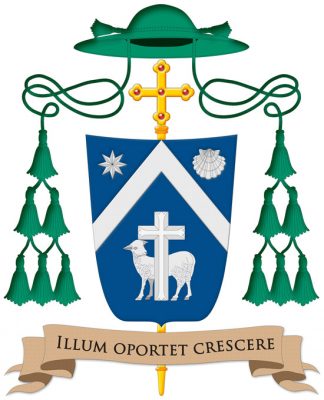 Infine il cartiglio dove è inscritta la prima parte del versetto trentesimo, del capitolo terzo, del Vangelo di Giovanni: «Illum oportet crescere», “Egli deve crescere”, e la crescita nella relazione con Dio è l’augurio più grande che tutta la comunità diocesana dedica al neo arcivescovo.