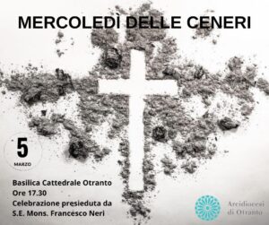 Il 5 marzo, alle ore 17:30, nella Basilica Cattedrale di Otranto, Mons. Francesco Neri presiederà la celebrazione del Mercoledì delle Ceneri.