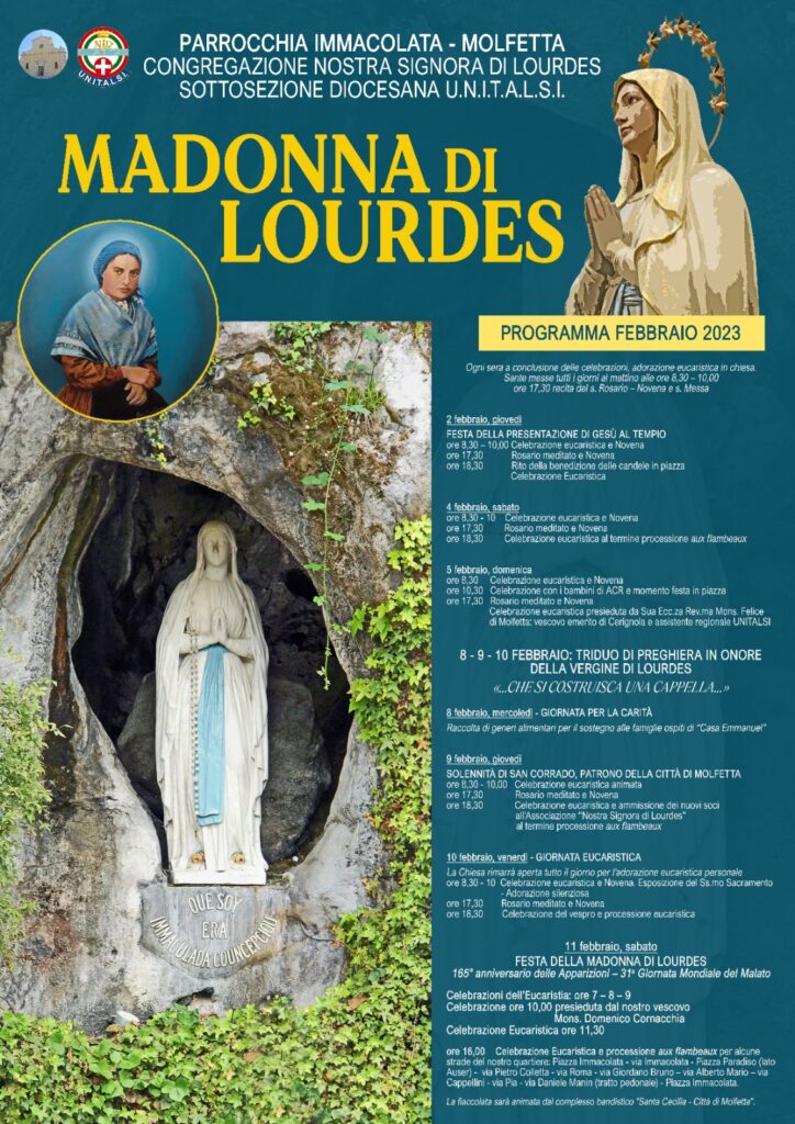 La comunità parrocchiale dell’Immacolata in Molfetta, insieme alla Congregazione Nostra Signora di Lourdes e la sottosezione diocesana dell’U.N.I.T.A.L.S.I. si prepara a vivere i giorni di preparazione alla Festa della Madonna di Lourdes.