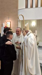 Sabato 8 novembre 2025, nei Primi Vespri della Festa della Dedicazione della Basilica Lateranense, Mons. Vescovo ha presieduto la S. Messa nella parrocchia S. Francesco Antonio Fasani di Lucera, nel quartiere Lucera 2, durante la quale ha amministrato il Sacramento della confermazione ad alcuni ragazzi.
