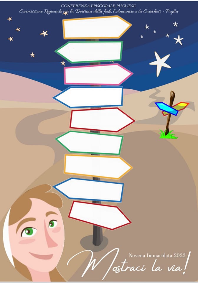 😏La novena dell’Immacolata 2022 per bambini e ragazzi è strutturata a partire dall’invocazione rivolta a Maria come “Odegitria”, colei che “mostra la via”. Nei singoli giorni della novena si ripercorrono, sulla base dei racconti evangelici, i vari tragitti percorsi dalla Vergine nel suocammino terreno, associando a ciascuno un atteggiamento che la madre di Gesù indica per crescere in Cristo, la vera “Via”.👈