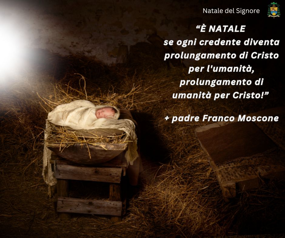 dioc. Manfredonia Natale del Signore – Arcidiocesi di Manfredonia – Vieste – San Giovanni Rotondo 24 Dicembre 2024 0 22 24 Dicembre 202424 Dicembre 2024 25 dicembre 2024 Il pensiero di padre Franco Moscone “E’ NATALE se ogni credente diventa prolungamento di Cristo per l’umanità, prolungamento di umanità per Cristo!” + padre Franco Moscone clic qui per l’articolo sul sito diocesano ARTICOLI CORRELATIALTRO DALL'AUTORE RETE INTERNAZIONALE “PRETI CONTRO IL GENOCIDIO” – Lettera aperta ai Vescovi Italiani in occasione della preghiera per la pace ORDINAZIONE DI DON MICHELE COPPOLECCHIA – Arcidiocesi di Manfredonia – Vieste – San Giovanni Rotondo ORDINAZIONE PRESBITERALE DI DON ELISEO COSTANTINO – Arcidiocesi di Manfredonia – Vieste – San Giovanni Rotondo GIORNATA MONDIALE DEI POVERI – 2025 – Arcidiocesi di Manfredonia – Vieste – San Giovanni Rotondo Un voto per costruire Speranza e Fraternità – Arcidiocesi di Manfredonia – Vieste – San Giovanni Rotondo
