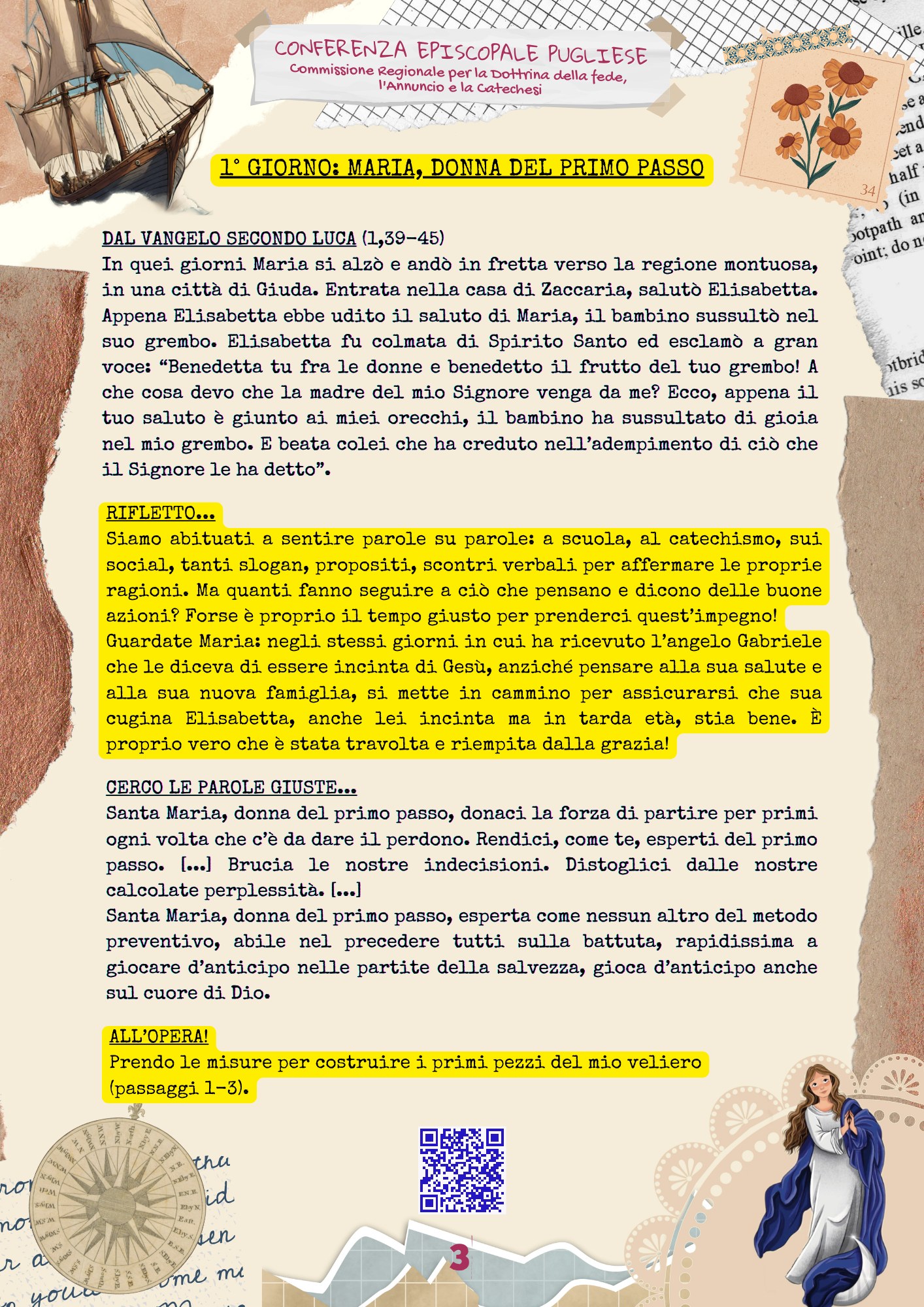 A ogni piccola tappa saremo guidati da un brano del Nuovo Testamento che riguarda da vicino la madre di Gesù. Costruiremo passo passo un veliero ⛵️[Come Fare una Barca di Cartone (con Immagini) – wikiHow], perché, salendo a bordo, la nostra vita sia spinta dal soffio dello Spirito Santo a cercare la bellezza del nostro quotidiano.