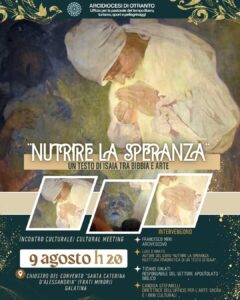 Un secondo appuntamento estivo di incontro e dialogo promosso dall’Ufficio per la pastorale del tempo libero, turismo, sport e pellegrinaggi: sabato 9 agosto, alle ore 20.00, presso il chiostro del convento “Santa Caterina d’Alessandria” in Galatina.