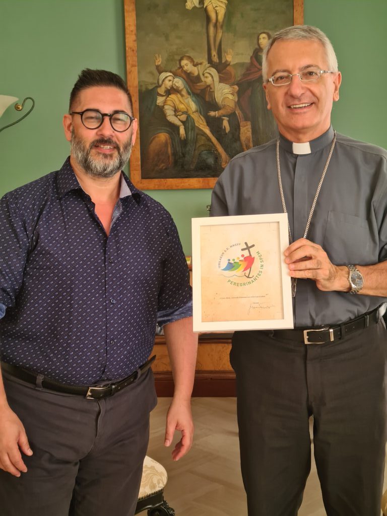 Oggi l’Arcivescovo ha incontrato Giacomo Travisani, l’autore del logo per il Giubileo del 2025 prescelto da Papa Francesco