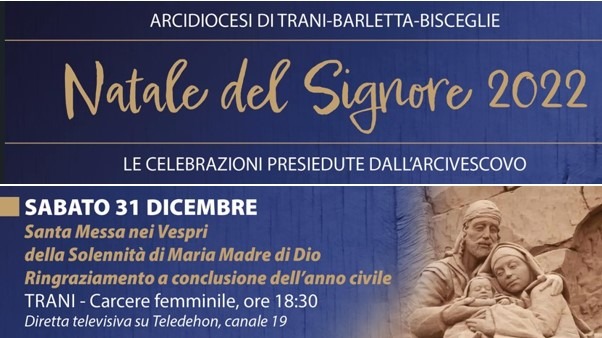 dioc. Trani OGGI S. MESSA PRESIEDUTA DALL’ARCIVESCOVO NEL CARCERE FEMMINILE DI TRANI IN DIRETTA TELEVISIVA SU TELEDEHON CANALE 19 31 Dicembre 2022 0 23 clic qui per l’articolo sul sito della Diocesi di Trani-Bisceglie-Barletta ARTICOLI CORRELATIALTRO DALL'AUTORE RITIRO DEL CLERO GIOVANE 24 NOVEMBRE 2025 GIORNATA PRO ORANTIBUS – MONASTERO SAN RUGGIERO INCONTRO DI CLERO ZONA PASTORALE TRANI “SAN NICOLA PELLEGRINO” Giovedì 20 novembre 2025 PDF: I CONTENUTI DEL PRIMO INCONTRO – Prof. Pier Cesare RIVOLTELLA Prof. Pier Cesare RIVOLTELLA – PRIMA SESSIONE INCONTRO DIOCESANO