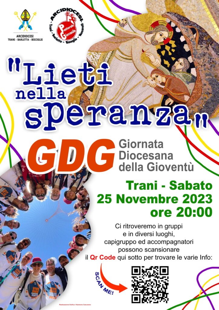 Dal Servizio Diocesano di Pastorale Giovanile PROSSIMI APPUNTAMENTI DELLA PASTORALE GIOVANILE DIOCESANA: GDG & RITIRO D’AVVENTO LA PROSSIMA GDG Come ogni anno vogliamo celebrare assieme alla Chiesa Universale la giornata diocesana dei giovani. La sera della vigilia di CRISTO RE, il 25 novembre alle 20.00, ci ritroveremo a Trani assieme al nostro Arcivescovo per annunciare e testimoniare la nostra SPERANZA. LA GDG È COME SEMPRE … Continua a leggere »
