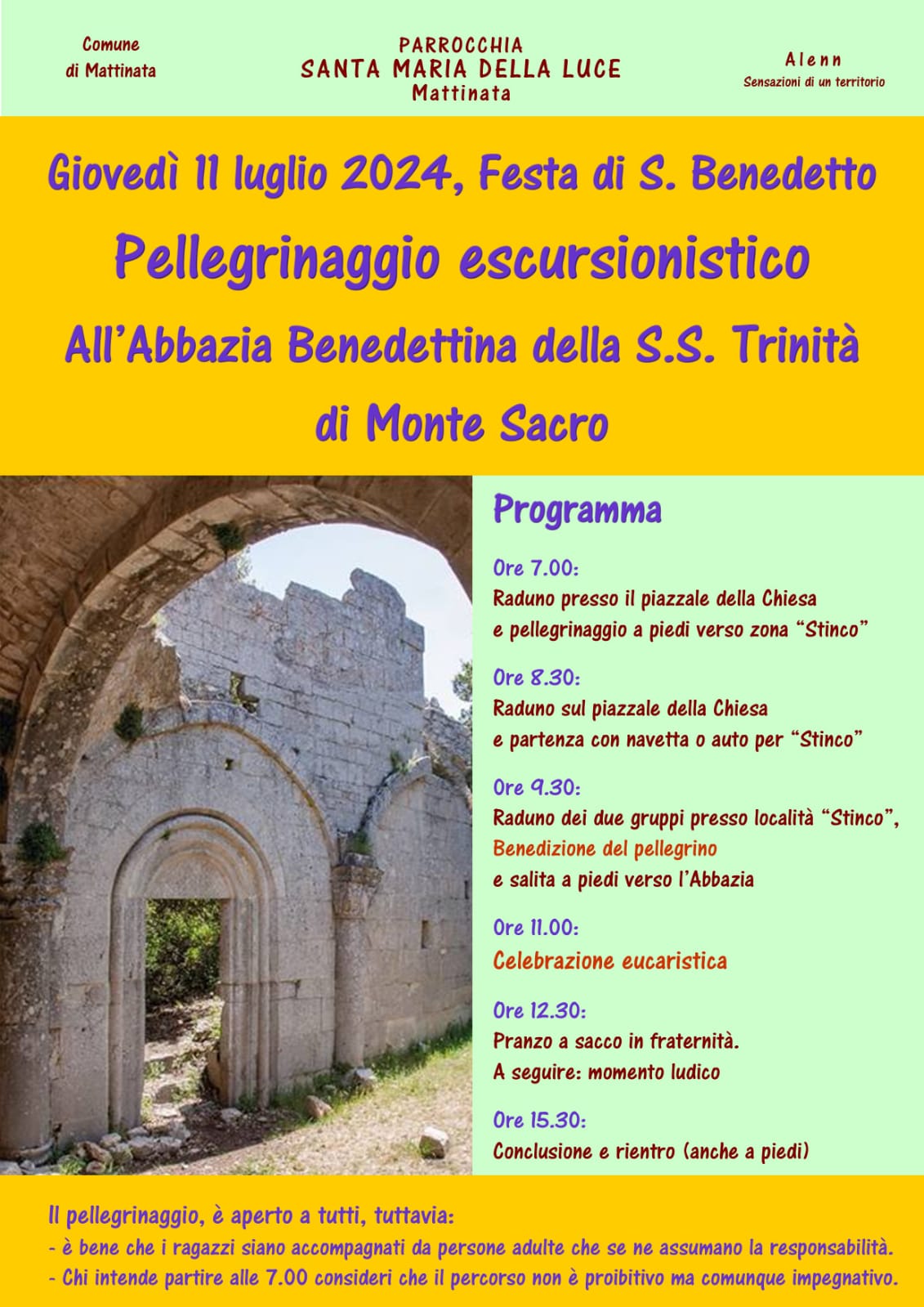 dioc. Manfredonia Pellegrinaggio escursionistico all’Abbazia di Monte Sacro – Arcidiocesi di Manfredonia – Vieste – San Giovanni Rotondo 7 Luglio 2024 0 39 7 Luglio 2024 Giovedì 11 luglio 2024, nella Festa di S. Benedetto, Pellegrinaggio escursionistico all’Abbazia Benedettina della S.S. Trinità di Monte Sacro (Mattinata). clic qui per l’articolo sul sito diocesano ARTICOLI CORRELATIALTRO DALL'AUTORE RETE INTERNAZIONALE “PRETI CONTRO IL GENOCIDIO” – Lettera aperta ai Vescovi Italiani in occasione della preghiera per la pace ORDINAZIONE DI DON MICHELE COPPOLECCHIA – Arcidiocesi di Manfredonia – Vieste – San Giovanni Rotondo ORDINAZIONE PRESBITERALE DI DON ELISEO COSTANTINO – Arcidiocesi di Manfredonia – Vieste – San Giovanni Rotondo GIORNATA MONDIALE DEI POVERI – 2025 – Arcidiocesi di Manfredonia – Vieste – San Giovanni Rotondo Un voto per costruire Speranza e Fraternità – Arcidiocesi di Manfredonia – Vieste – San Giovanni Rotondo