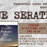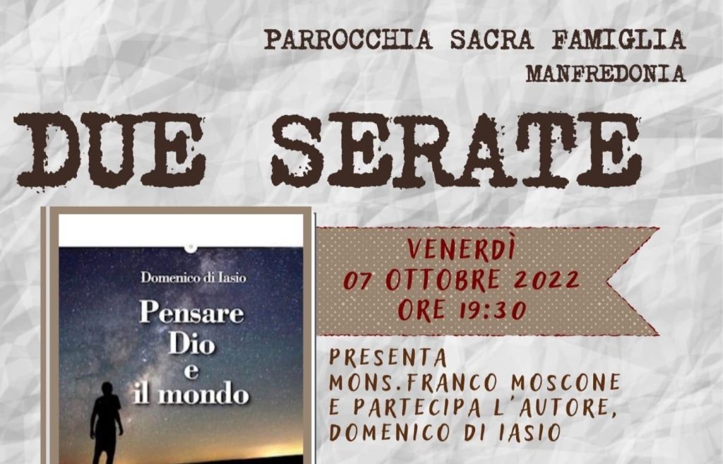 dioc. Manfredonia “Pensare Dio e il mondo” – Arcidiocesi di Manfredonia – Vieste – San Giovanni Rotondo 7 Ottobre 2022 0 29 7 Ottobre 20226 Ottobre 2022 Manfredonia – Parrocchia Sacra Famiglia Presentazione del libro di Domenico di Iasio Questa sera alle 19.30, presso la Parrocchia Sacra Famiglia, padre Franco Moscone presenta il libro dal titolo “Pensare Dio e il mondo”, di Domenico di Iasio. clic qui per l’articolo sul sito diocesano ARTICOLI CORRELATIALTRO DALL'AUTORE RETE INTERNAZIONALE “PRETI CONTRO IL GENOCIDIO” – Lettera aperta ai Vescovi Italiani in occasione della preghiera per la pace il giornalismo che fa vivere i settimanali diocesani – Arcidiocesi di Manfredonia – Vieste – San Giovanni Rotondo ORDINAZIONE DI DON MICHELE COPPOLECCHIA – Arcidiocesi di Manfredonia – Vieste – San Giovanni Rotondo ORDINAZIONE PRESBITERALE DI DON ELISEO COSTANTINO – Arcidiocesi di Manfredonia – Vieste – San Giovanni Rotondo GIORNATA MONDIALE DEI POVERI – 2025 – Arcidiocesi di Manfredonia – Vieste – San Giovanni Rotondo