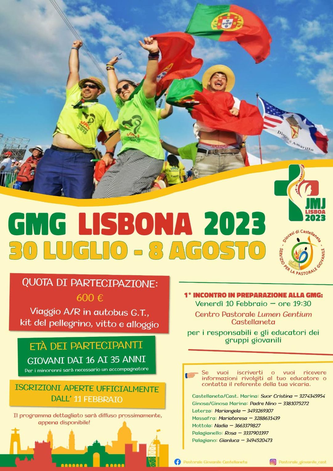 Venerdì 10 Febbraio alle ore 19:30 presso il Centro Pastorale Lumen Gentium di Castellaneta primo incontro in preparazione alla GMG per i responsabili e gli educatori dei gruppi giovanili