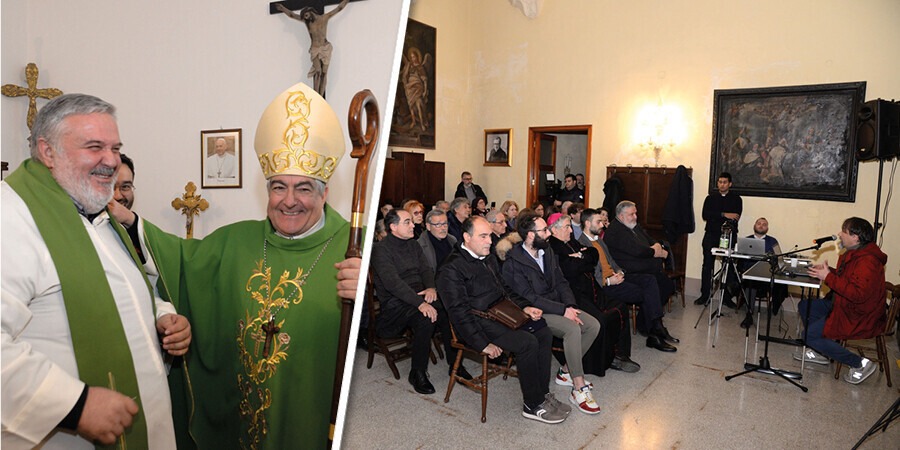 Dopo l’incontro, i giornalisti intervenuti hanno partecipato alla messa domenicale presieduta dall’arcivescovo Michele Seccia. Nell’omelia (LEGGI IL TESTO INTEGRALE) non ha tralasciato di salutare i giornalisti presenti: “C’è tra noi stasera, una bella rappresentanza di giornalisti e operatori della comunicazione, che nel giorno della loro festa organizzata dall’Ufficio diocesano per le comunicazioni, prima della messa, qui a Santa Croce, ha riflettuto proprio sull’autorevolezza dell’informazione e sugli interrogativi posti da Papa Francesco sull’avvento nella vita dell’uomo dell’Intelligenza Artificiale, nel suo Messaggio per la Giornata delle comunicazioni che celebreremo a maggio e che il Santo Padre ha già reso pubblico nel giorno della festa di San Francesco di Sales, patrono dei giornalisti, lo scorso 24 gennaio”.