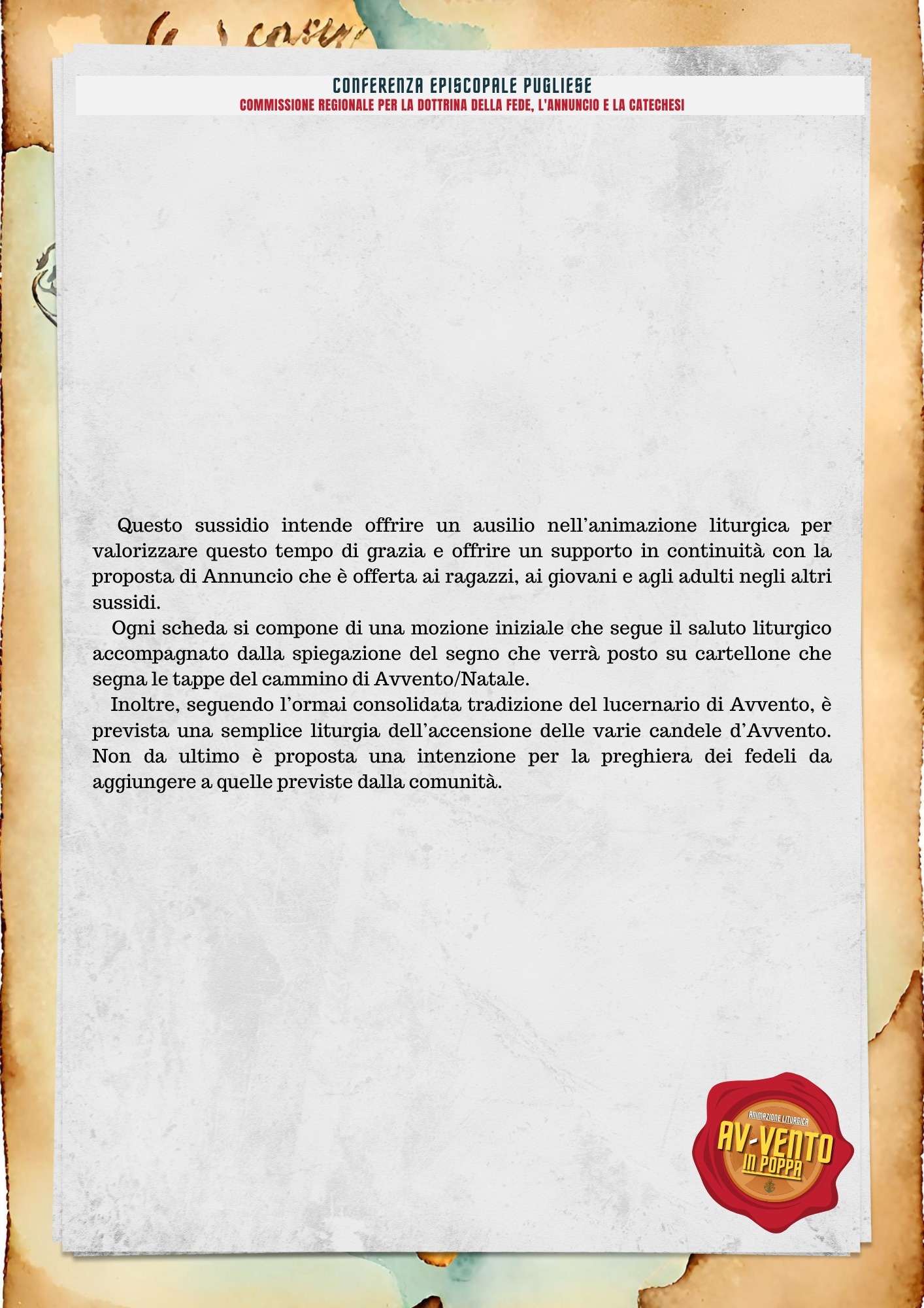 🧐Questo sussidio intende offrire un ausilio nell’animazione liturgica per valorizzare questo tempo di grazia e offrire un supporto in continuità con la proposta di Annuncio che è offerta ai ragazzi, ai giovani e agli adulti negli altri sussidi. Ogni scheda si compone di una mozione iniziale che segue il saluto liturgico accompagnato dalla spiegazione del segno che verrà posto su cartellone che segna le tappe del cammino di Avvento/Natale. Inoltre, seguendo l’ormai consolidata tradizione del lucernario di Avvento, è prevista una semplice liturgia dell’accensione delle varie candele d’Avvento. Non da ultimo è proposta una intenzione per la preghiera dei fedeli da aggiungere a quelle previste dalla comunità.😍🥰🤩