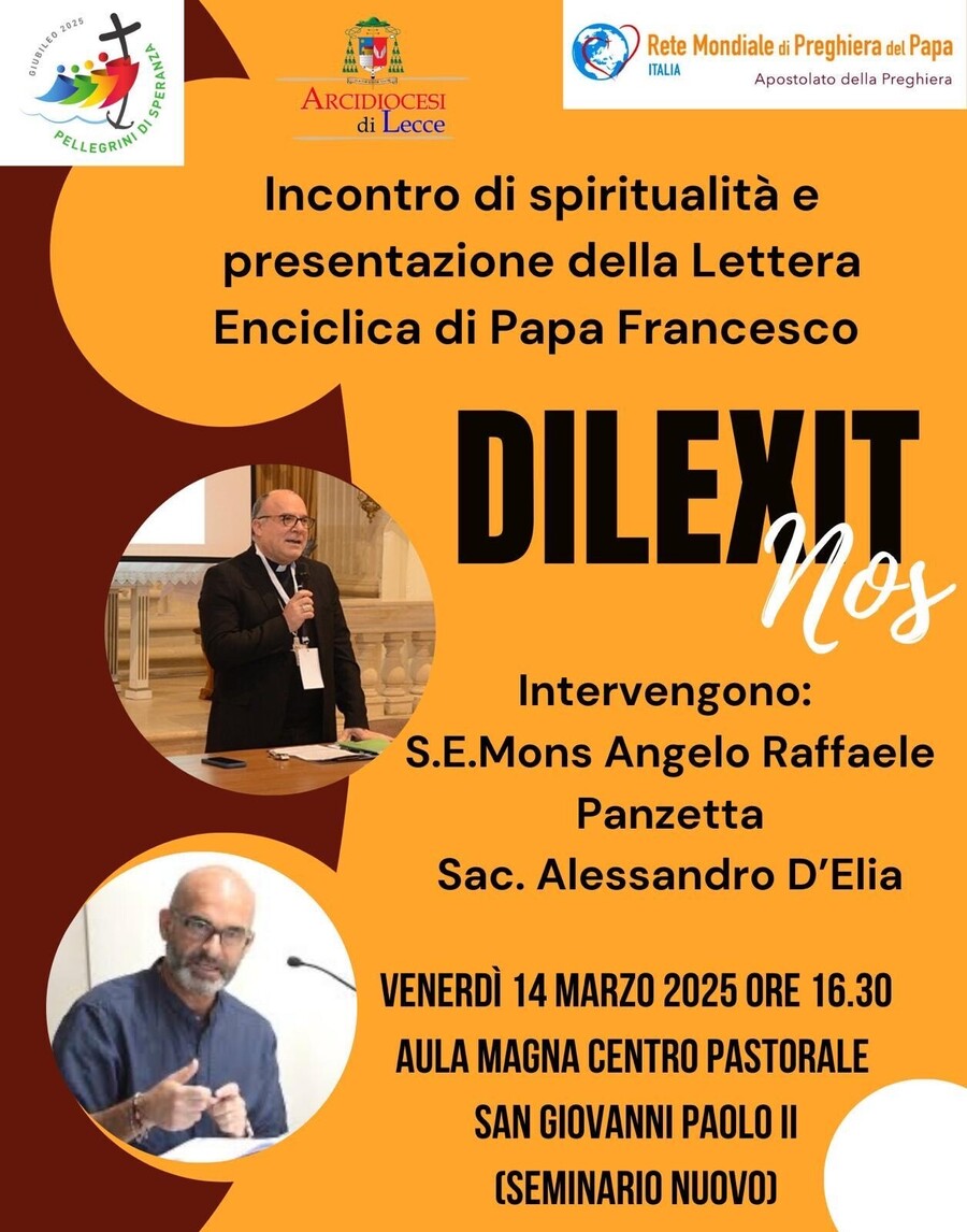 Il prossimo venerdì 14 marzo, alle 16:30, nell’aula magna del Centro di pastorale e cultura “Giovanni Paolo II” (ex nuovo seminario), sarà speciale il consueto appuntamento mensile della Rete mondiale di preghiera del Papa diocesana di Lecce.