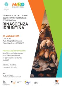 L’iniziativa, che si svolgerà il 16 maggio alle ore 18.30 presso l’Aula Magna del Seminario di Otranto, prevede la presentazione di due progetti di studio: Biblioteca Casolana. mappatura dei codici sparsi nelle biblioteche del mondo, e Acta Martyrum hydruntinorum, studio delle fonti storiche ed iconografiche sul martirio degli 800.