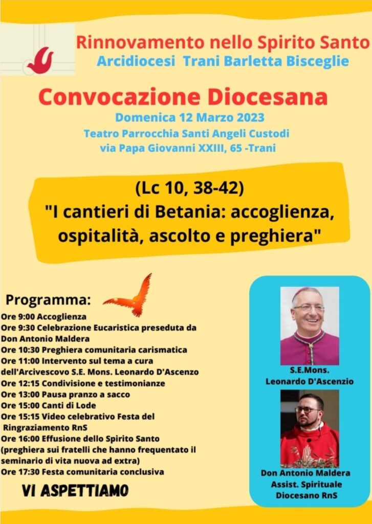 dioc. Trani RINNOVAMENTO NELLO SPIRITO – CONVOCAZIONE DIOCESANA – LA SANTA MESSA PRESIEDUTA DALL’ARCIVESCOVO 11 Marzo 2023 0 23 clic qui per l’articolo sul sito della Diocesi di Trani-Bisceglie-Barletta ARTICOLI CORRELATIALTRO DALL'AUTORE GIORNATA PRO ORANTIBUS – MONASTERO SAN RUGGIERO INCONTRO DI CLERO ZONA PASTORALE TRANI “SAN NICOLA PELLEGRINO” Giovedì 20 novembre 2025 PDF: I CONTENUTI DEL PRIMO INCONTRO – Prof. Pier Cesare RIVOLTELLA Prof. Pier Cesare RIVOLTELLA – PRIMA SESSIONE INCONTRO DIOCESANO A CORATO UN INCONTRO SULLA LIBERTA’ DI STAMPA – Un diritto da conoscere, difendere e onorare – Per giornalisti e per l’intero pubblico