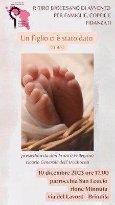 L’appuntamento è per il 10 dicembre a Brindisi nella parrocchia “San Leucio Protovescovo”, via del Lavoro al rione Minnuta alle ore 17,00