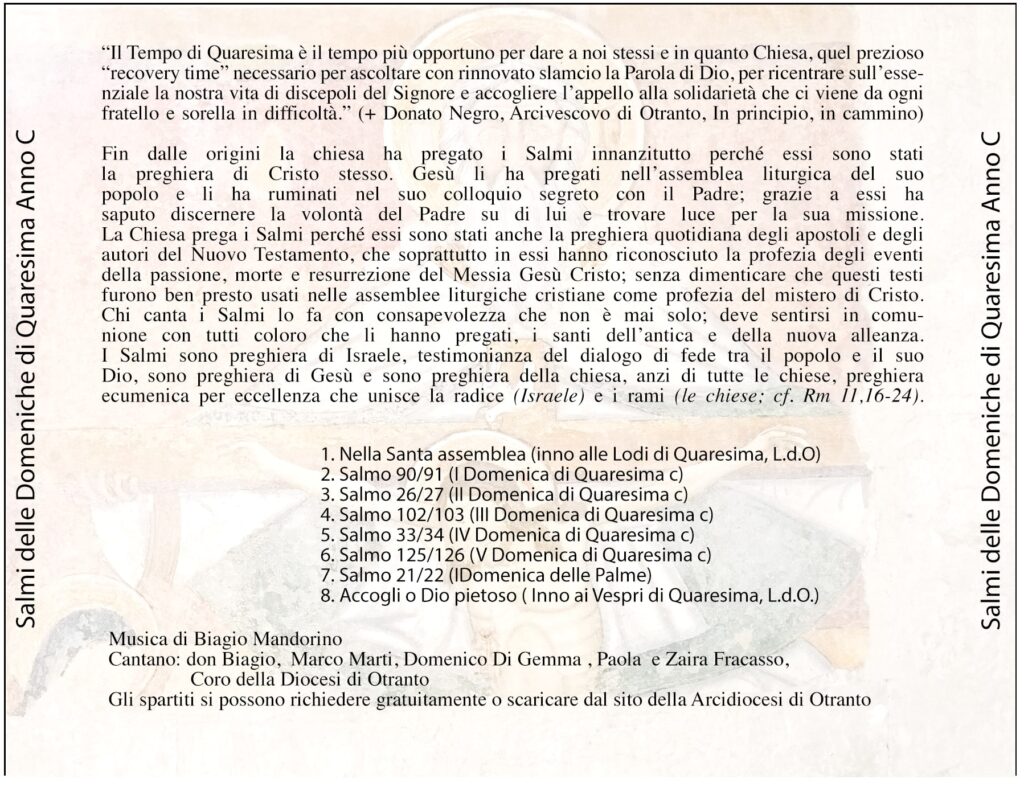 Dal link sottostante è possibile ascoltare e scaricare i Salmi Responsoriali delle Domeniche di Quaresima musicati da don Biagio Mandorino.