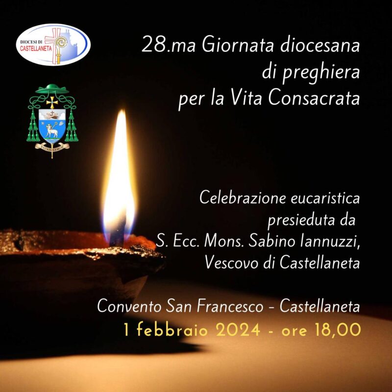 Giovedì 1° Febbraio 2024 alle ore 18:00 presso il Convento San Francesco di Castellaneta, Mons. Sabino Iannuzzi presiederà la Celebrazione Eucaristica con i membri degli istituti religiosi presenti in Diocesi in occasione della 28.ma Giornata diocesana di preghiera per la Vita Consacrata.
