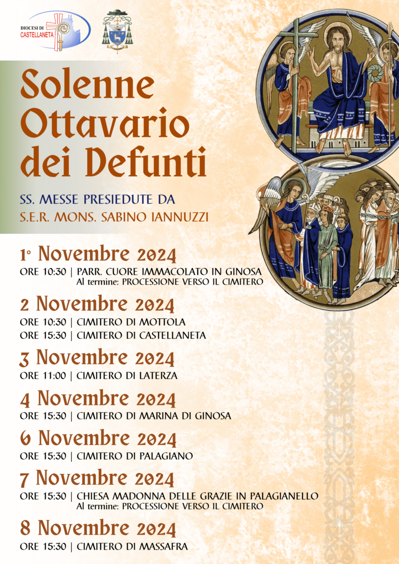 7 novembre, ore 15,30 – Chiesa Madonna delle Grazie – Palagianello (al termine processione verso il Cimitero)