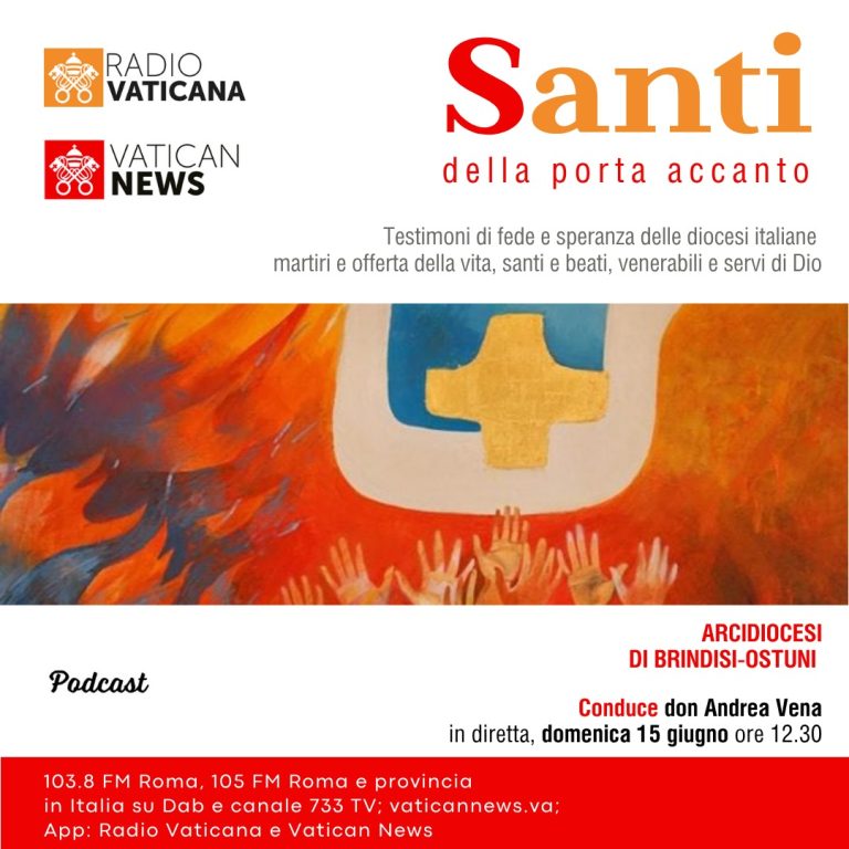 domenica 15 giugno alle ore 12.30 andrà in onda una nuova puntata del programma “Santi della porta accanto” su Radio Vaticana e Vatican News, dedicata all’Arcidiocesi di Brindisi-Ostuni e condotta da don Andrea Vena.