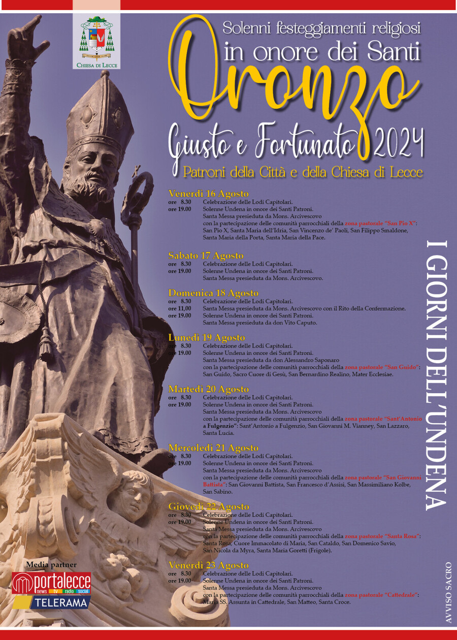 Nei giorni scorsi, intanto, la diocesi ha diffuso il programma delle celebrazioni religiose e degli eventi culturali organizzati dalla Chiesa locale (LEGGI), lo stesso programma verrà incluso anche nel manifesto che sta allestendo il comune di Lecce.