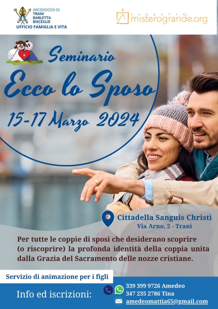dioc. Trani SEMINARIO “ECCO LO SPOSO” A CURA DELL’UFFICIO DIOCESANO FAMIGLIA E VITA 29 Gennaio 2024 0 32 clic qui per l’articolo sul sito della Diocesi di Trani-Bisceglie-Barletta ARTICOLI CORRELATIALTRO DALL'AUTORE GIORNATA PRO ORANTIBUS – MONASTERO SAN RUGGIERO INCONTRO DI CLERO ZONA PASTORALE TRANI “SAN NICOLA PELLEGRINO” Giovedì 20 novembre 2025 PDF: I CONTENUTI DEL PRIMO INCONTRO – Prof. Pier Cesare RIVOLTELLA Prof. Pier Cesare RIVOLTELLA – PRIMA SESSIONE INCONTRO DIOCESANO A CORATO UN INCONTRO SULLA LIBERTA’ DI STAMPA – Un diritto da conoscere, difendere e onorare – Per giornalisti e per l’intero pubblico