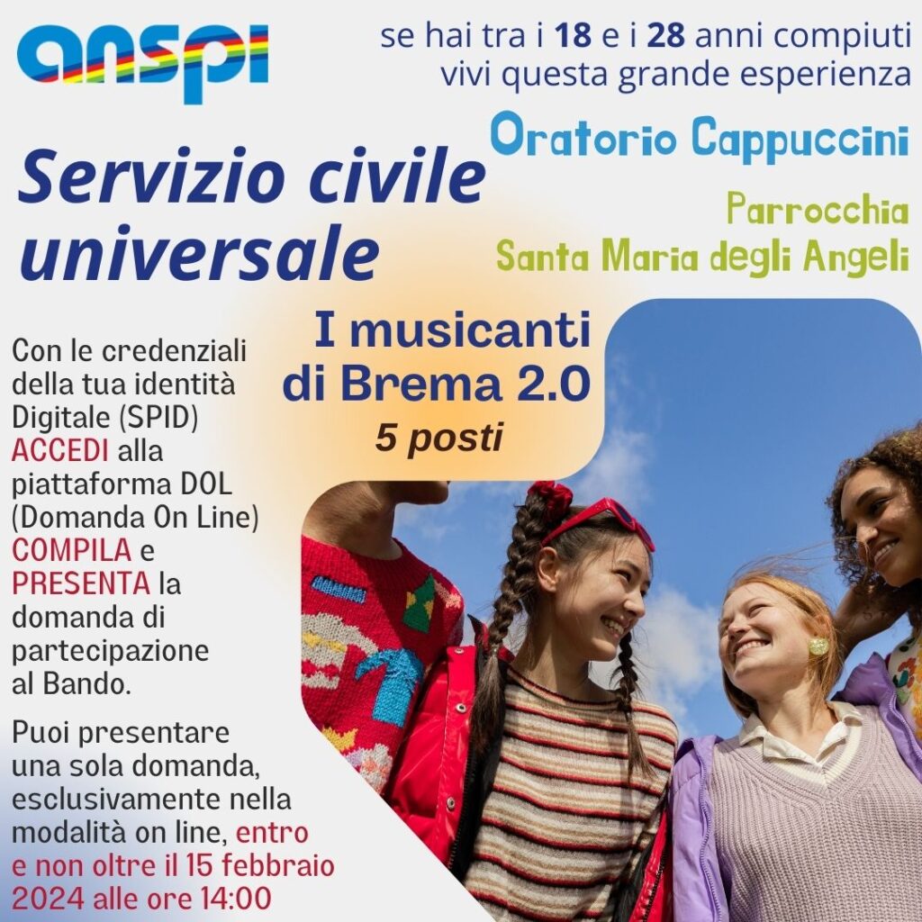 Finalmente ho il piacere di annunciare che dopo anni di progettazione portiamo a casa un altro importante risultato per il nostro oratorio: abbiamo il servizio civile 5 giovani potranno fare domanda per vivere un anno straordinario in parrocchia. Per ogni info potete rivolgervi a me Don Francesco Doronzo Il bando prevede: Assistenza minori e giovani in condizione di disagio o di esclusione sociale. Attività di … Continua a leggere