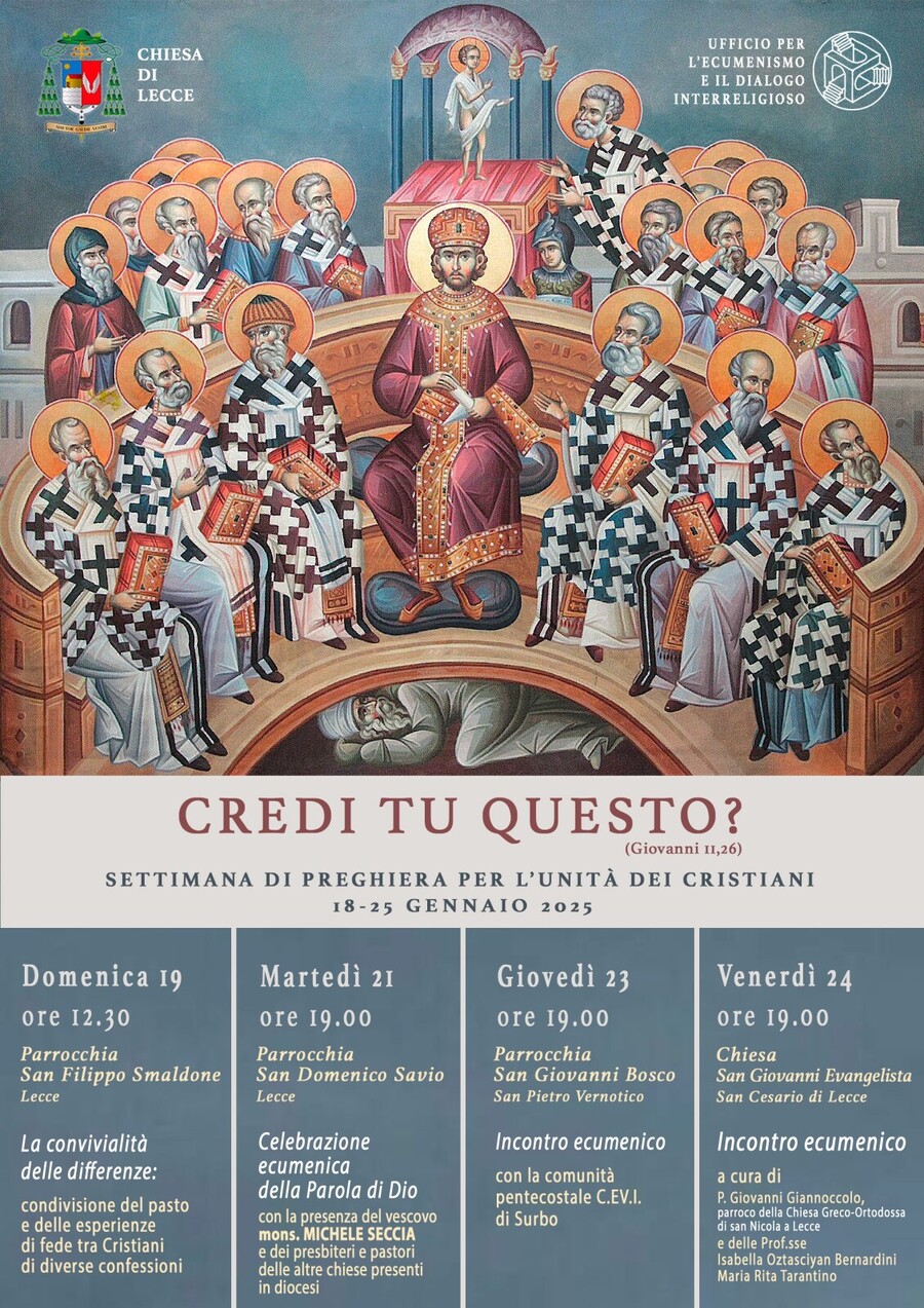 La Chiesa di Lecce vivrà oggi 21 gennaio, nella basilica di San Domenico Savio, il clou della Settimana di preghiera per l’unità dei cristiani.
