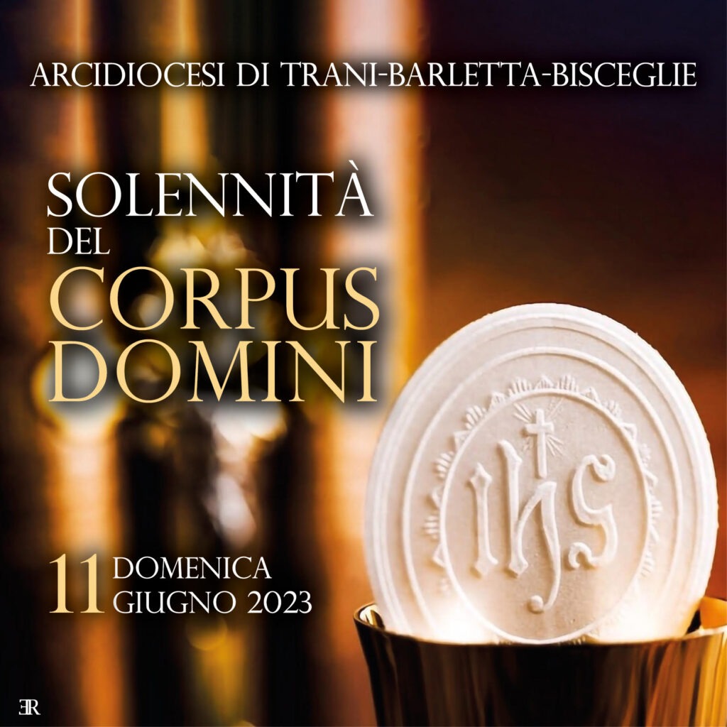 SOLENNITA’ DEL CORPUS DOMINI. Di seguito il programma delle celebrazioni eucaristiche cittadine nelle sette città che compongono l’Arcidiocesi di Trani-Barletta-Bisceglie in occasione della solennità del Corpus Domini di domenica 11 giugno 2023. Si riporta alcuni passaggi della lettera dell’Arcivescovo Mons. Leonardo D’Ascenzo inviata ai presbiteri all’inizio del giugno 2022 con cui vengono date alcune indicazioni, valide anche quest’anno, al fine di far esaltare maggiormente la … Continua a leggere SOLENNITA’ DEL CORPUS DOMINI.