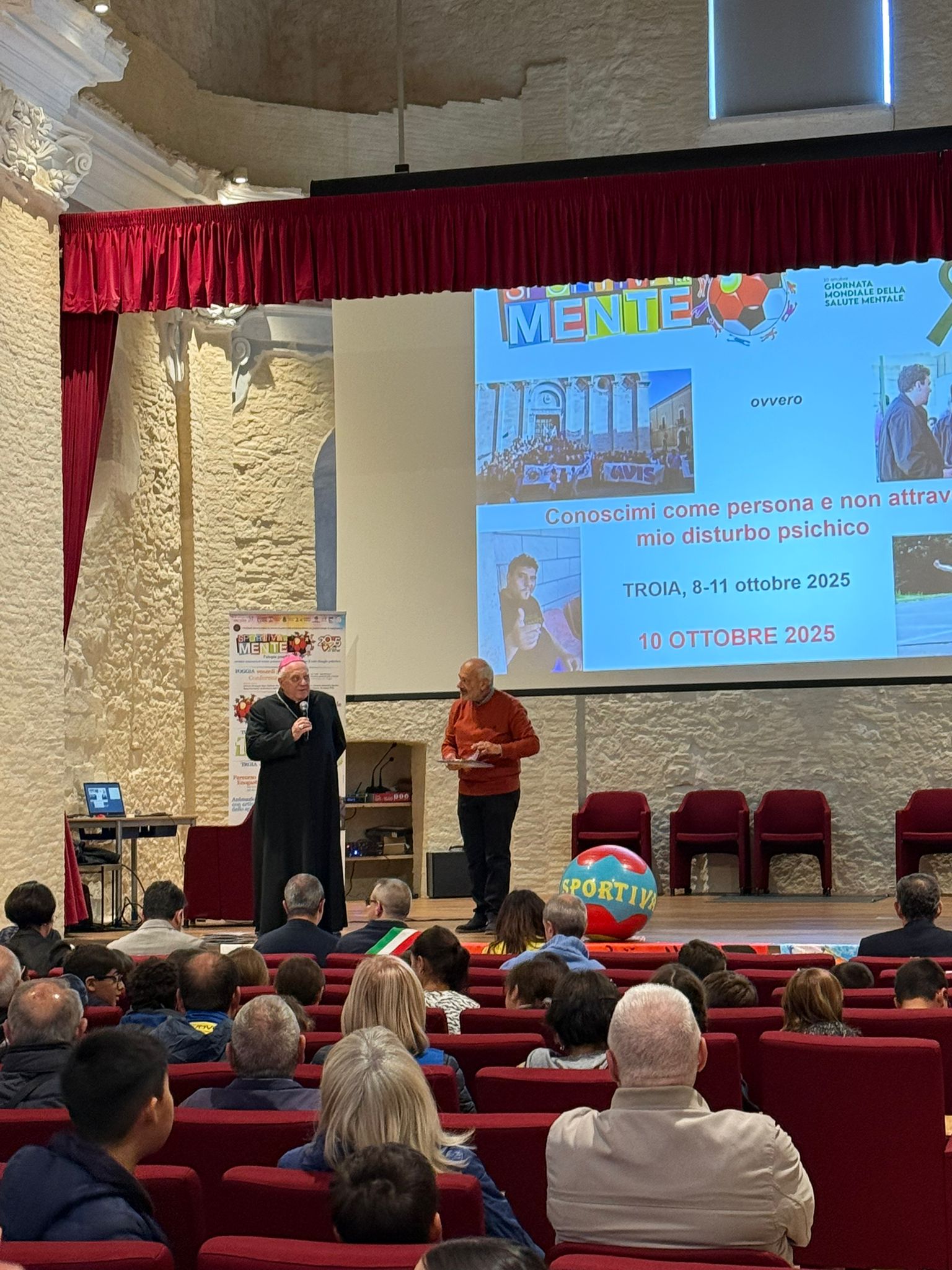 Nella giornata di giovedì 9 ottobre 2025, a Troia, Mons. Vescovo ha preso parte alla manifestazione di “Sportiva…mente, l’utopia possibile. Ovvero conoscimi come persona e non attraverso il mio disagio psichico”. La manifestazione – giunta alla sua 14esima edizione – è organizzata in collaborazione con diverse istituzioni per combattere il discredito nei confronti dei disagi psichici.