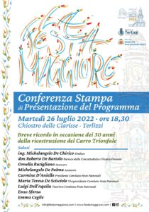 Alle ore 18.30, infatti, è prevista all’interno del Chiostro delle Clarisse la conferenza stampa per la presentazione del programma della Festa Maggiore 2022 in onore della Madonna di Sovereto.
