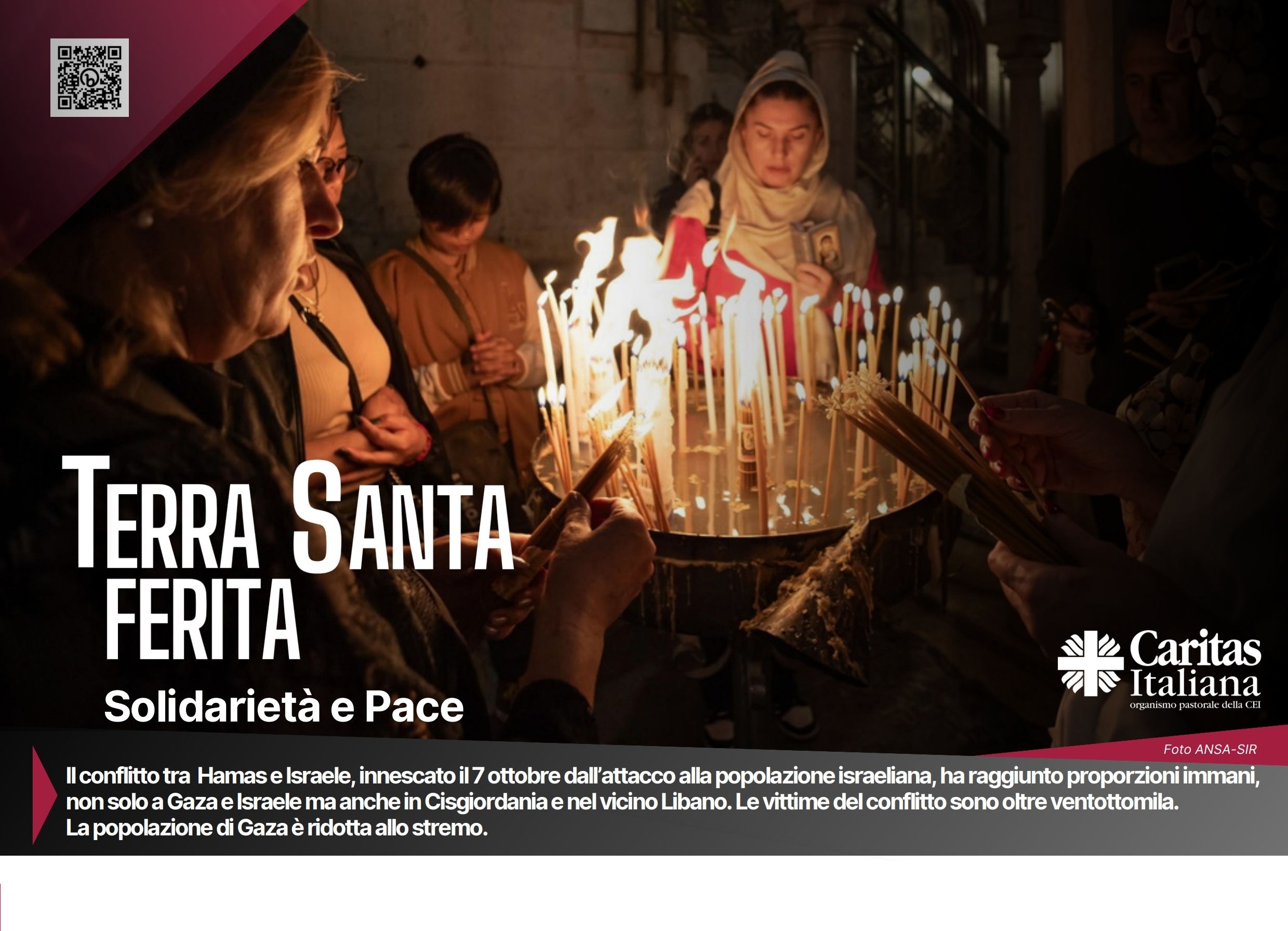 mentre vi assicuriamo che come Caritas diocesana siamo in contatto con Caritas Italiana per essere disponibili ad ogni richiesta che ci può giungere per le popolazioni colpite dal conflitto in Terra Santa, in accordo con Padre Arcivescovo vi invitiamo a partecipare ad una colletta straordinaria indetta dalla Conferenza Episcopale Italiana, da svolgersi domenica 18 febbraio 2023. Le offerte raccolte saranno affidate a Caritas Italiana e renderanno possibile una progettazione unitaria degli interventi anche grazie al coordinamento con la rete delle Caritas internazionali impegnate sul campo.