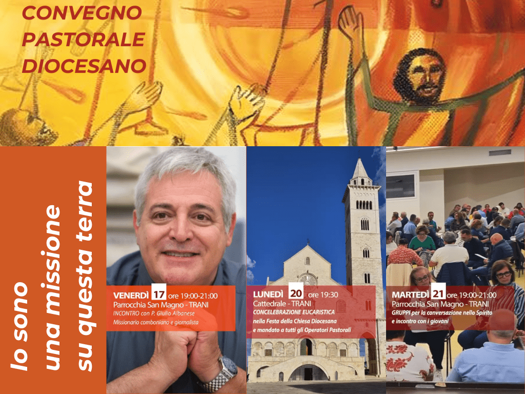 dioc. Trani TI ASPETTIAMO 13 Ottobre 2025 0 14 clic qui per l’articolo sul sito della Diocesi di Trani-Bisceglie-Barletta ARTICOLI CORRELATIALTRO DALL'AUTORE PDF: I CONTENUTI DEL PRIMO INCONTRO – Prof. Pier Cesare RIVOLTELLA Prof. Pier Cesare RIVOLTELLA – PRIMA SESSIONE INCONTRO DIOCESANO A CORATO UN INCONTRO SULLA LIBERTA’ DI STAMPA – Un diritto da conoscere, difendere e onorare – Per giornalisti e per l’intero pubblico BISCEGLIE, PARROCCHIA SANT’ANDREA APOSTOLO, CELEBRAZIONE EUCARISTICA PRESIEDUTA DALL’ARCIVESCOVO PER L’INIZIO DEL MINISTERO PASTORALE DI PARROCO DI DON FRANCESCO LORUSSO INCONTRO DI CLERO ZONA PASTORALE OFANTINA Trinitapoli, 17 novembre 2025