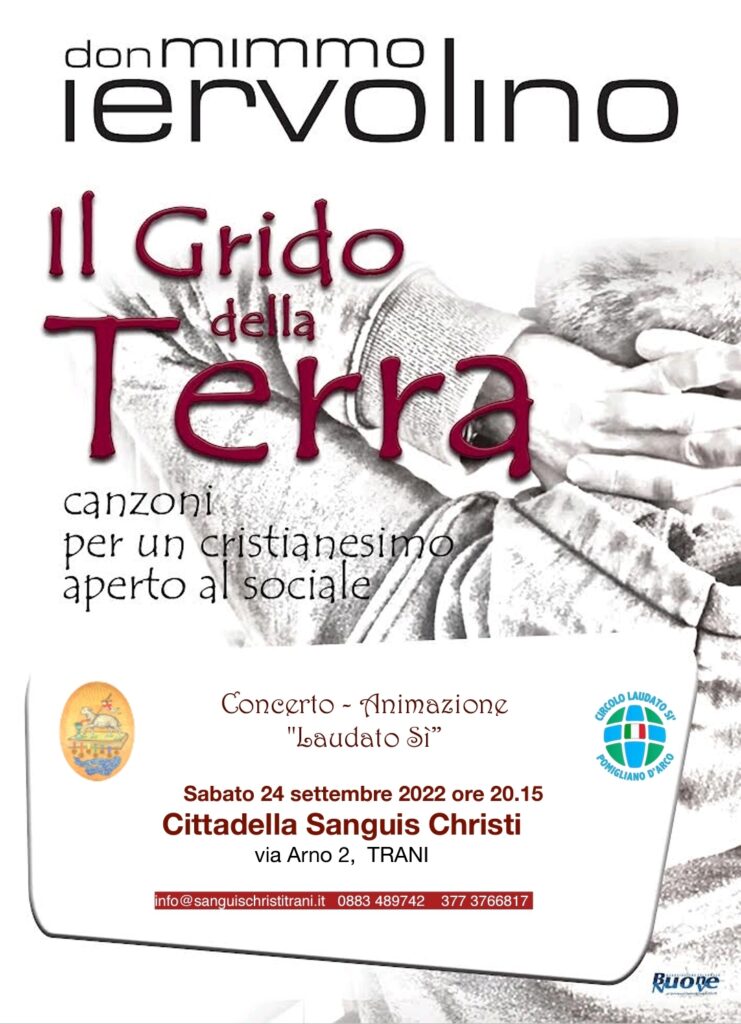 dioc. Trani TRANI, CITTADELLA SANGUIS CHRISTI – IL GRIDO DELLA TERRA – CANZONI PER UN CRISTIANESIMO APERTO AL SOCIALE CON DON MIMMO IERVOLINO 23 Settembre 2022 0 25 clic qui per l’articolo sul sito della Diocesi di Trani-Bisceglie-Barletta ARTICOLI CORRELATIALTRO DALL'AUTORE RITIRO DEL CLERO GIOVANE 24 NOVEMBRE 2025 GIORNATA PRO ORANTIBUS – MONASTERO SAN RUGGIERO INCONTRO DI CLERO ZONA PASTORALE TRANI “SAN NICOLA PELLEGRINO” Giovedì 20 novembre 2025 PDF: I CONTENUTI DEL PRIMO INCONTRO – Prof. Pier Cesare RIVOLTELLA Prof. Pier Cesare RIVOLTELLA – PRIMA SESSIONE INCONTRO DIOCESANO