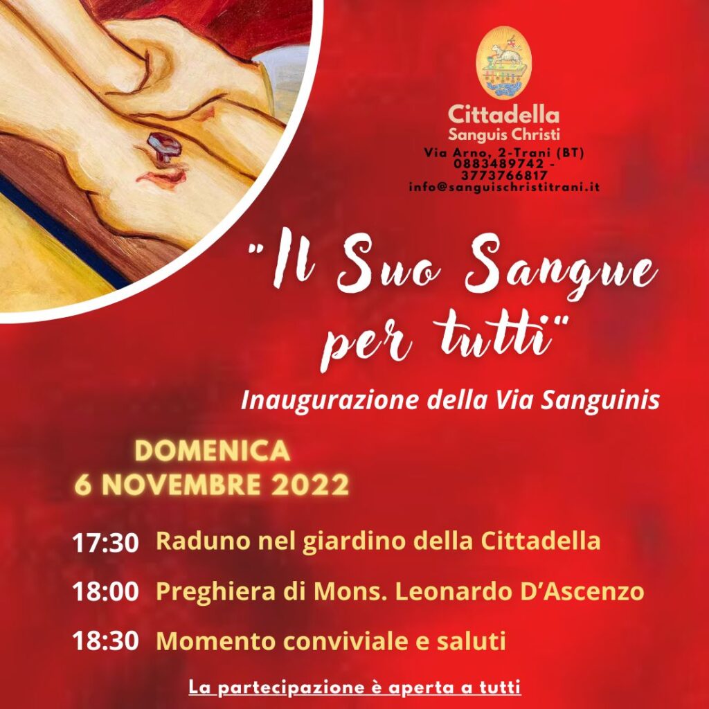 TRANI, CITTADELLA SANGUIS CHRISTI, INAUGURAZIONE DELLA VIA SANGUINIS