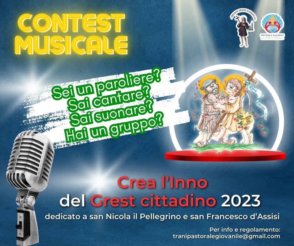 Il Comitato Feste Patronali, in collaborazione con la Pastorale Giovanile, bandisce un contest musicale per la realizzazione di un inno per il Grest. Il Grest è l’esperienza estiva dell’oratorio che annualmente le parrocchie vivono con piccoli e grandi all’insegna della fede con riflessioni, laboratori, giochi e danze. Un momento per fare comunità. In virtù dei molti aspetti comuni con il Santo Patrono Nicola il Pellegrino, … Continua a leggere TRANI. CONTEST MUSICALE PER LA REALIZZAZIONE DI UN INNO PER IL GREST