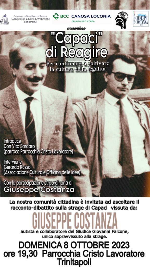 dioc. Trani TRINITAPOLI. “CAPACI DI REAGIRE. PER CONTINUARE A COLTIVARE LA CULTURA DELLA LEGALITA’” 7 Ottobre 2023 0 29 clic qui per l’articolo sul sito della Diocesi di Trani-Bisceglie-Barletta ARTICOLI CORRELATIALTRO DALL'AUTORE INCONTRO DI CLERO ZONA PASTORALE TRANI “SAN NICOLA PELLEGRINO” Giovedì 20 novembre 2025 PDF: I CONTENUTI DEL PRIMO INCONTRO – Prof. Pier Cesare RIVOLTELLA Prof. Pier Cesare RIVOLTELLA – PRIMA SESSIONE INCONTRO DIOCESANO A CORATO UN INCONTRO SULLA LIBERTA’ DI STAMPA – Un diritto da conoscere, difendere e onorare – Per giornalisti e per l’intero pubblico BISCEGLIE, PARROCCHIA SANT’ANDREA APOSTOLO, CELEBRAZIONE EUCARISTICA PRESIEDUTA DALL’ARCIVESCOVO PER L’INIZIO DEL MINISTERO PASTORALE DI PARROCO DI DON FRANCESCO LORUSSO