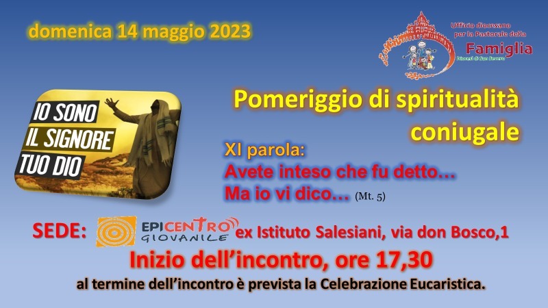 dioc. San Severo UFFICIO DIOCESANO PER LA PASTORALE DELLA FAMIGLIA. Pomeriggio di Spiritualità coniugale. “Avete inteso che fu detto… Ma io vi dico…” 5 Maggio 2023 0 22 L’articolo UFFICIO DIOCESANO PER LA PASTORALE DELLA FAMIGLIA. Pomeriggio di Spiritualità coniugale. “Avete inteso che fu detto… Ma io vi dico…” proviene da Diocesi di San Severo. clic qui per l’articolo sul sito della Diocesi di San Severo ARTICOLI CORRELATIALTRO DALL'AUTORE Diocesi di San Severo » parola alla Parola – GIOVEDÌ 20/11/2025 Diocesi di San Severo » parola alla Parola – DOMENICA 16/11/2025 Diocesi di San Severo » UN VOTO per COSTRUIRE SPERANZA e FRATERNITÀ Diocesi di San Severo » parola alla Parola – SABATO 15/11/2025 Diocesi di San Severo » parola alla Parola – VENERDÌ 14/11/2025