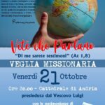 La Veglia Missionaria si terrà nella Chiesa Cattedrale di Andria venerdì 21 ottobre 2022 alle ore 20:00 e sarà presieduta dal Vescovo Mons. Luigi Mansi.