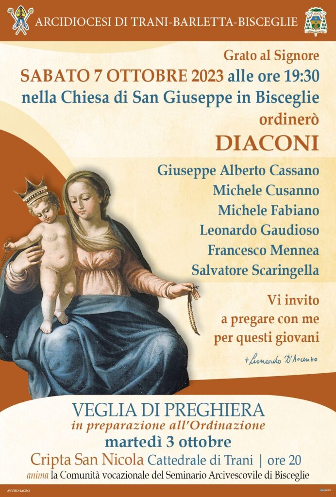 dioc. Trani VERSO L’ORDINAZIONE DI SEI DIACONI 16 Settembre 2023 0 36 clic qui per l’articolo sul sito della Diocesi di Trani-Bisceglie-Barletta ARTICOLI CORRELATIALTRO DALL'AUTORE GIORNATA PRO ORANTIBUS – MONASTERO SAN RUGGIERO INCONTRO DI CLERO ZONA PASTORALE TRANI “SAN NICOLA PELLEGRINO” Giovedì 20 novembre 2025 PDF: I CONTENUTI DEL PRIMO INCONTRO – Prof. Pier Cesare RIVOLTELLA Prof. Pier Cesare RIVOLTELLA – PRIMA SESSIONE INCONTRO DIOCESANO A CORATO UN INCONTRO SULLA LIBERTA’ DI STAMPA – Un diritto da conoscere, difendere e onorare – Per giornalisti e per l’intero pubblico