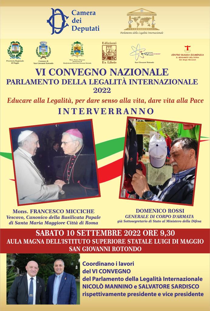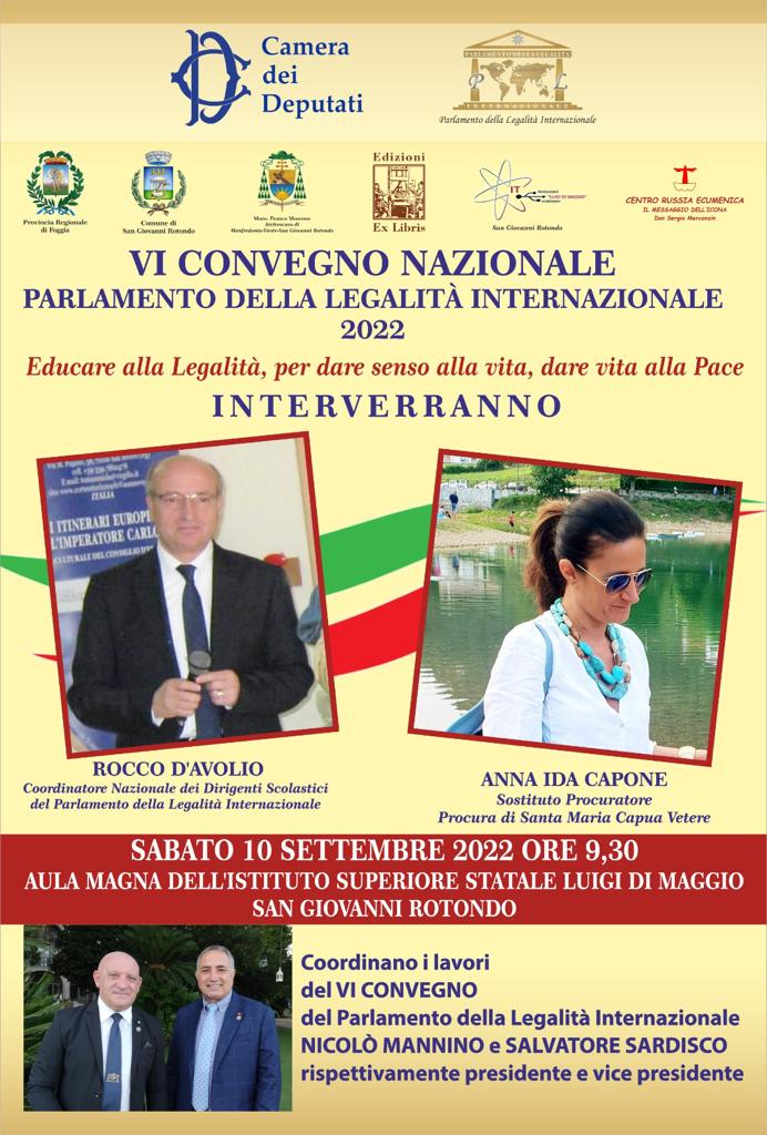 C’è chi diventa esempio donando la vita. Chi con le azioni diventa modello da imitare. Alcuni di questi, tra cui i genitori di Luca Attanasio, Ambasciatore nella Repubblica Democratica del Congo e ucciso in un agguato nel 2021, saranno protagonisti del VI Convegno Nazionale dal titolo “Educare alla Legalità, per dare senso alla vita, dare vita alla Pace”. L’appuntamento è all’Istituto “L. Di Maggio” di San Giovanni Rotondo, sabato 10 maggio 2022.
